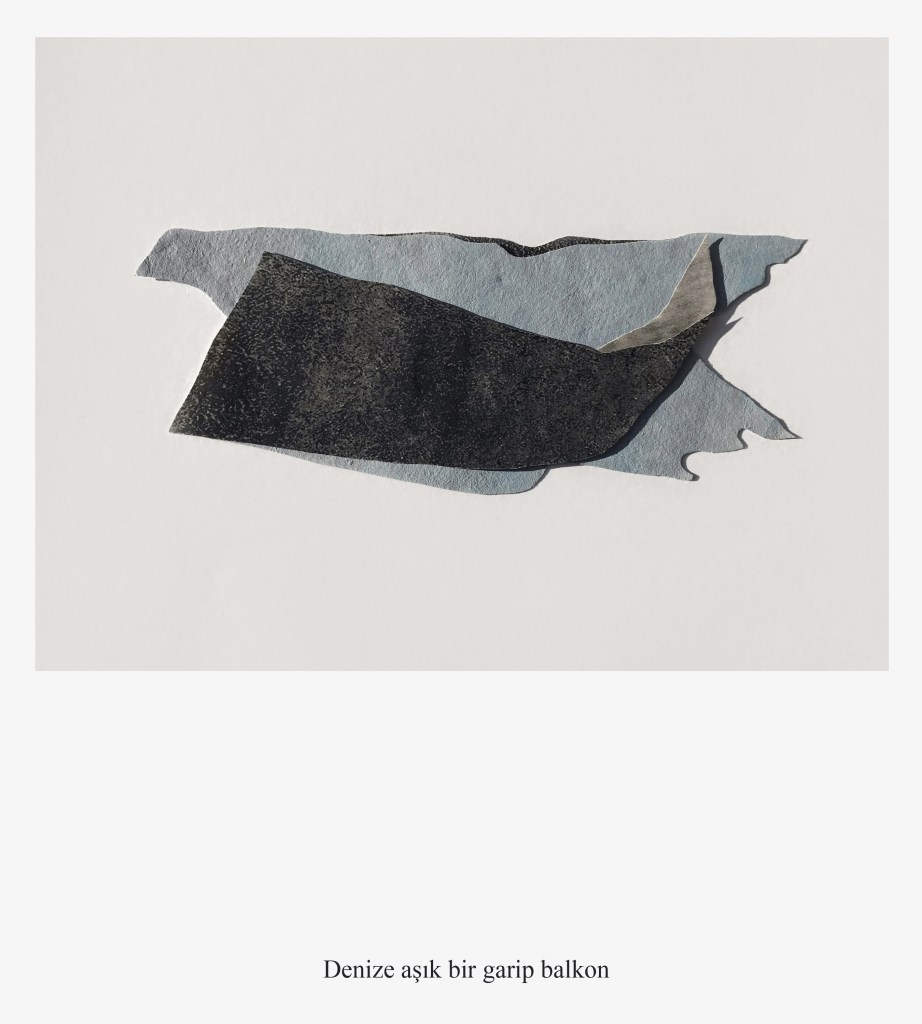 The collage work titled Borrowed consisting of seven pieces visualizes a poem assembled from Ceyhan Fırat’s autobiographical book ‘A Game of Legs’ published in 1996. The poetic world Fırat fictionalized through unsteady emotions merge with the abstract and fragile language of paper collages.